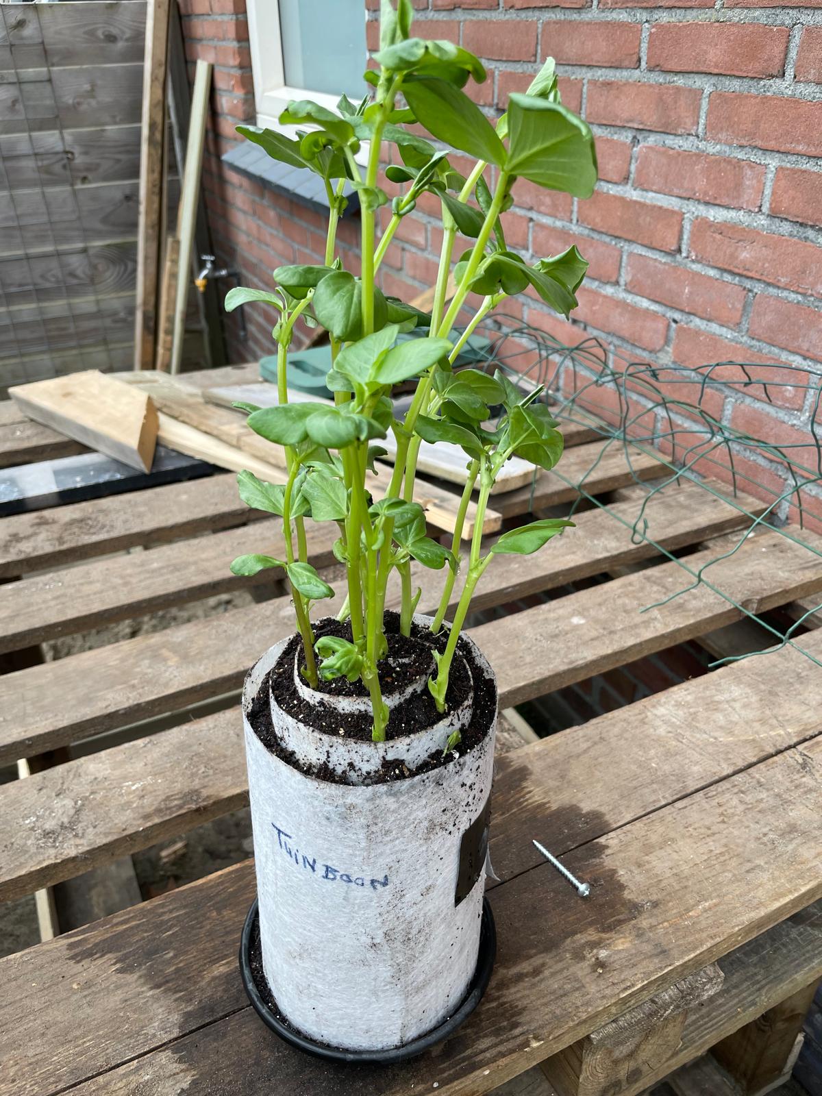 Op dit moment ben ik de tuinbonen aan het afharden. Hierdoor wennen de plantjes aan de buitenomstandigheden. Voor veel planten is het belangrijk om vooral op nachtvorst te letten, daarom wordt uitplanten na IJsheiligen vaak aanbevolen. Met de tuinbonen durf ik wel wat eerder naar buiten te doen omdat die wel tegen lichte vorst kunnen